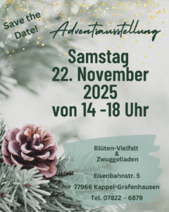 #SaveTheDate #Adventsausstellung #BlütenVielfalt #Zwuggelladen #Adventszauber #Dorfgemeinschaft #RegionalEinkaufen #Weihnachtsstimmung #MitHerzGemacht